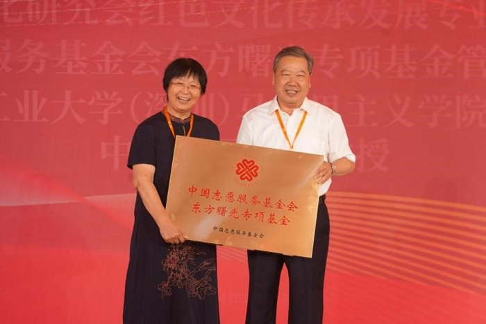 随后,与会嘉宾共同见证了“东方曙光专项基金”成立仪式,中国志愿服务基金会副理事长兼秘书长姚桂清致辞,表示愿支持“东方曙光专项基金”的发展壮大,支持“我是传承人”活动的开展,大力弘扬志愿服务精神,加强中华优秀传统文化的保护传承、研究阐释和转化利用。并由中国志愿服务基金会石大华理事长为东方曙光专项基金授牌。